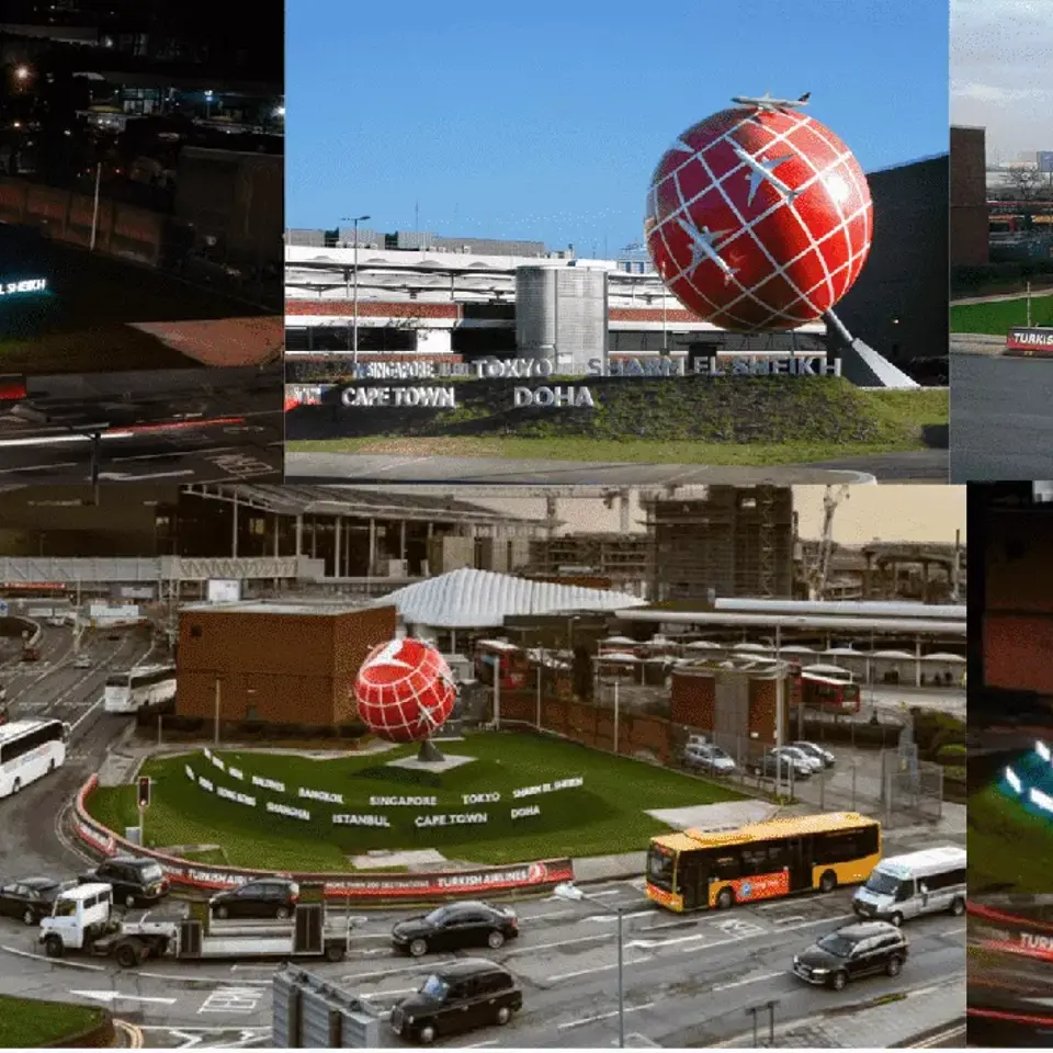 To mark its global presence, Turkish Airlines commissioned a large-scale branded installation at Heathrow Airport. The centrepiece was a 6.5m diameter globe, suspended on a 7.5t steel plinth, which needed to feature precise graphics representing longitude and latitude lines. The project also required branded Boeing 777 models and illuminated lettering showcasing destinations.