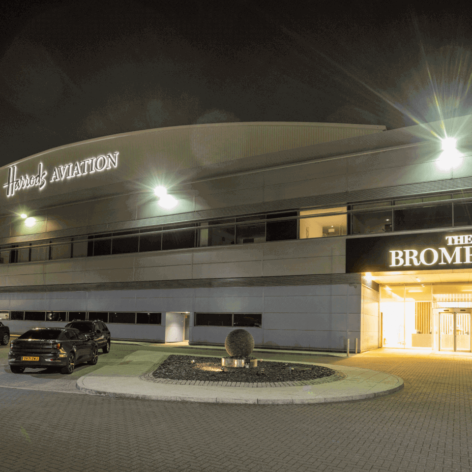 After acquiring Fayair, Harrods Aviation needed a full rebrand of its Stansted Airport site. The project required large-scale illuminated signage, precise brand replication, and complex installations at height within a busy airport environment, all while meeting strict health and safety standards.