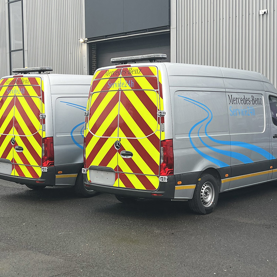 For vehicles operating on high-speed roads for maintenance or inspection, high-visibility rear markings are a legal requirement under Chapter 8 regulations. These markings ensure maximum visibility, protecting both road workers and other drivers.