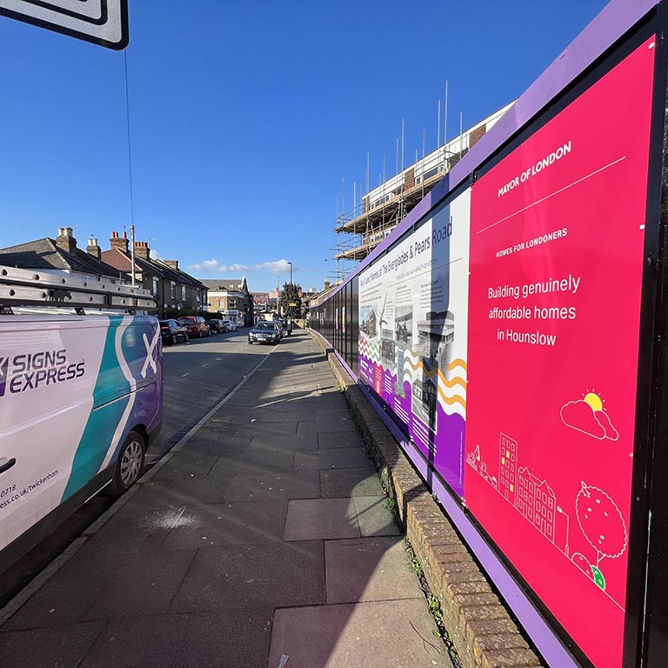 With a primary function of protecting the public and enclosing live construction areas, hoardings can also display directions, contact details and marketing campaigns.
